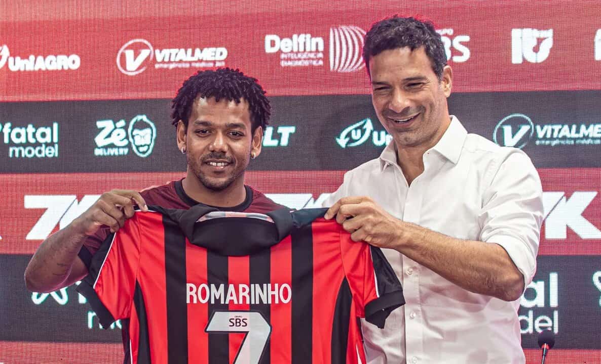 Última contratação anunciada pelo Vitória nesta segunda janela de transferências, o atacante Romarinho foi apresentado oficialmente na tarde deste sábado, 20, na Toca do Leão. Aos 34 anos, o jogador retorna ao Brasil após 11 temporadas no Oriente Médio e já traça um objetivo claro: estrear com a camisa rubro-negra diante do Palmeiras, no dia 3 de agosto, pela 18ª rodada do Brasileirão.