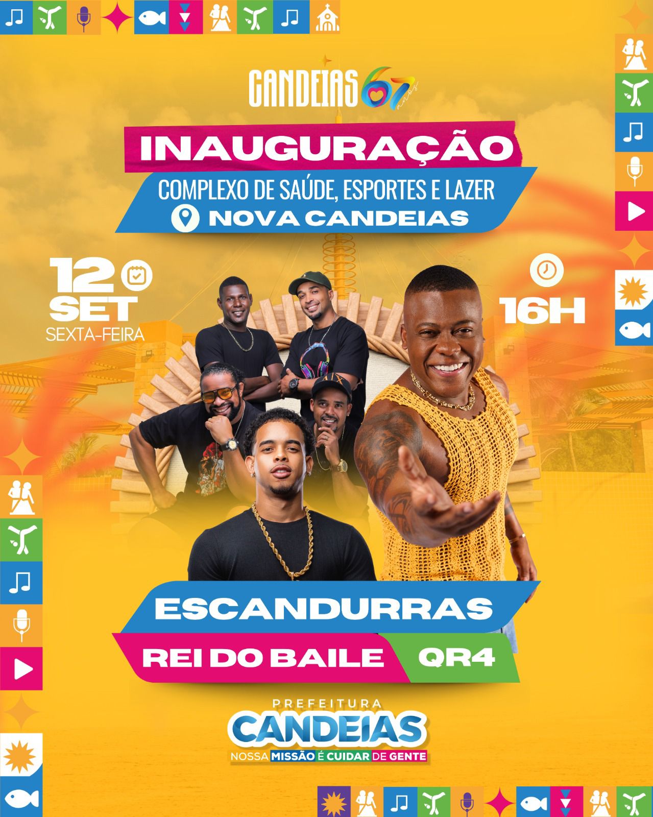 Para um grande equipamento, uma grande festa! Por isso, a Prefeitura de Candeias, por meio da Secretaria de Cultura e Turismo, anuncia as três atrações que irão fazer a festa da comunidade nesta sexta-feira (12), a partir das 15h, na inauguração do Complexo de Esporte, Saúde e Lazer, na Nova Candeias.