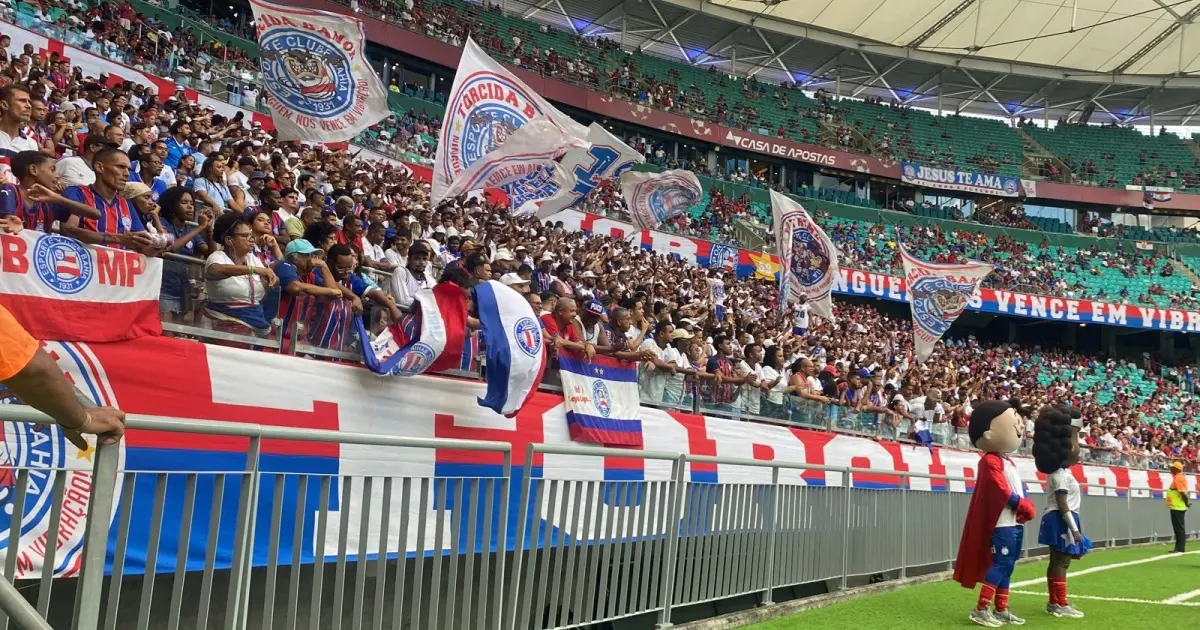 torcida do Bahia assistiu, neste sábado (17), ao triunfo do Esquadrão pelo placar de 3 a 0 sobre o Galícia, na Casa de Apostas Arena Fonte Nova. O total do público geral na casa do Tricolor foi de 20.631 torcedores na praça esportiva.