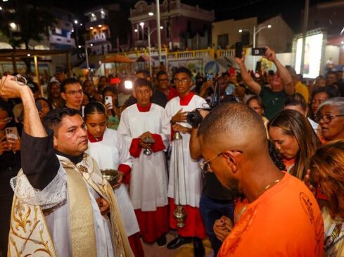 O momento solene contou ainda com as presenças do pároco e reitor do Santuário de Nossa Senhora das Candeias, frei Thiago Noronha; vereadores, secretários comunidade católicos e público geral.