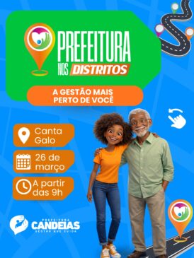 Com o objetivo de aproximar ainda mais a gestão pública da população que reside nas localidades mais distantes da sede do município, a Prefeitura de Candeias lançará o programa “Prefeitura nos Distritos”, uma ação que levará a estrutura administrativa da gestão diretamente às comunidades.